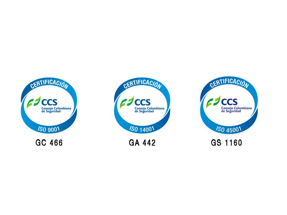 No complace informar que fuimos certificados por el Consejo Colombia de Seguridad bajo las Normas Internacionales ISO 9001 – ISO 14001 – 45001 con vigencia hasta el 2022.